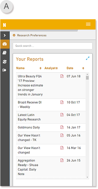 In this example there are only 2 navigation tabs for the portal - Dashboard, and Library. In clients examples of the portal, they can have upwards of 5-6 separate navigation items for their portal. This could be a list of subscriptions they have access too, another set of product dashboards and libraries, as well as anything newthey would like us to develop for them specifically.