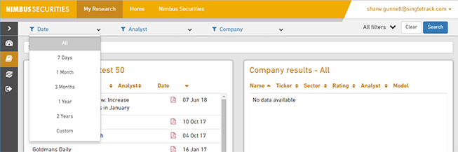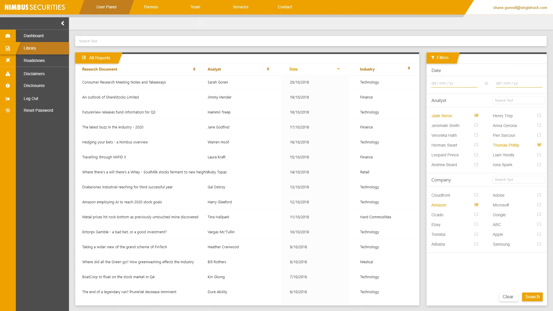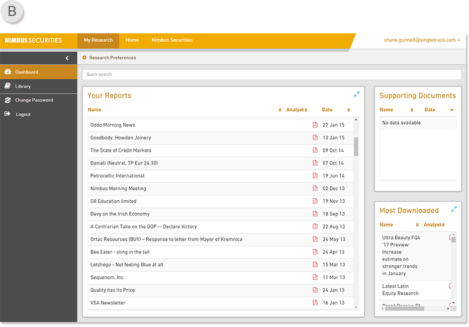 Nimbus is Singletrack's standard portal offering that is used to demo to potential clients the general stock-standard feel & capabilities that can be provided as a service.