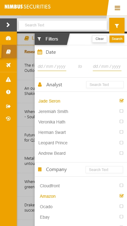 As you can see at the top of Library Image C, a variety of filters are available to best target what research you are searching for. These pills once clicked will reveal a drop-down of selectable parameters that would narrow down your search. Once you’ve selected as many as you’d like, pressing Search will affix a tag containing your search query to the document just below the search input box (This tag can be deleted at any time, or clicking clear removes the entire search criteria)