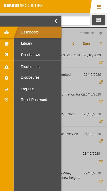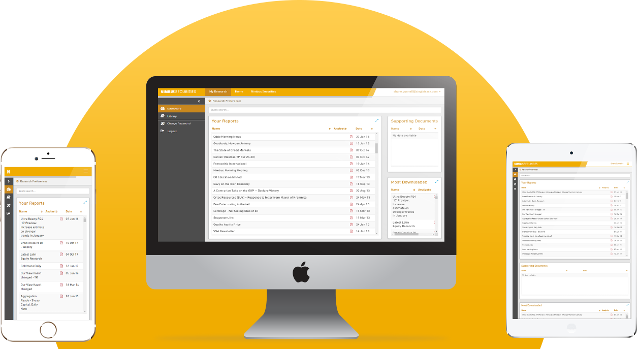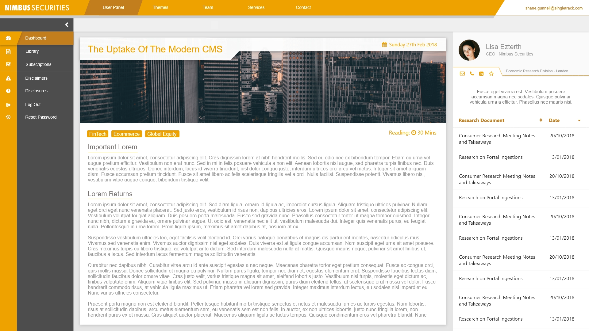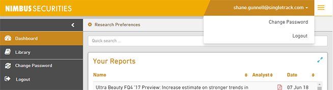 In this example there are only 2 navigation tabs for the portal - Dashboard, and Library. In clients examples of the portal, they can have upwards of 5-6 separate navigation items for their portal. This could be a list of subscriptions they have access too, another set of product dashboards and libraries, as well as anything newthey would like us to develop for them specifically.