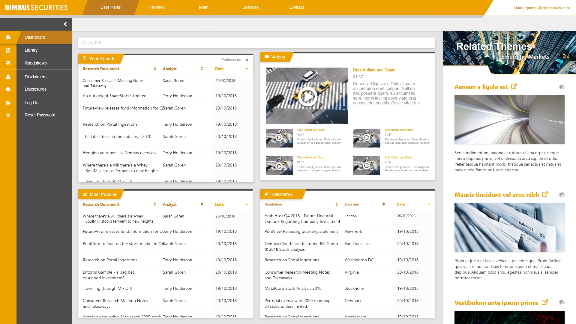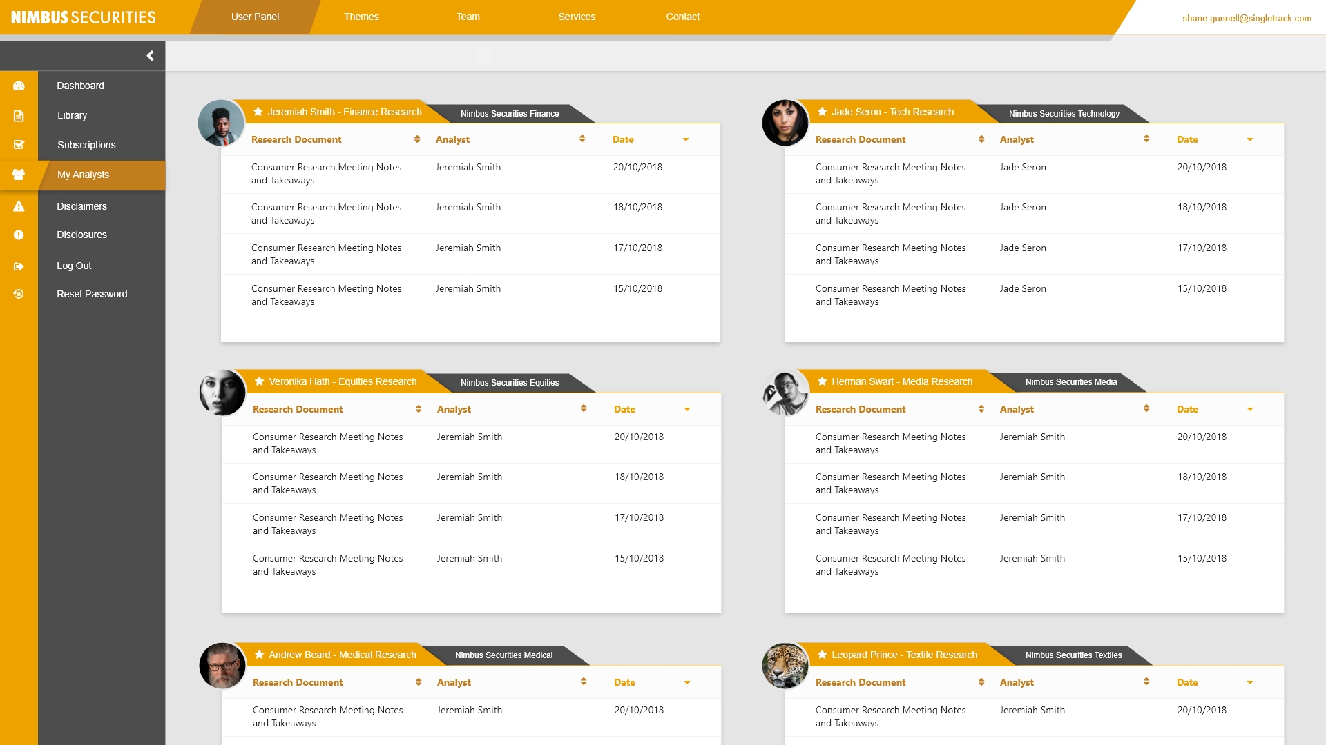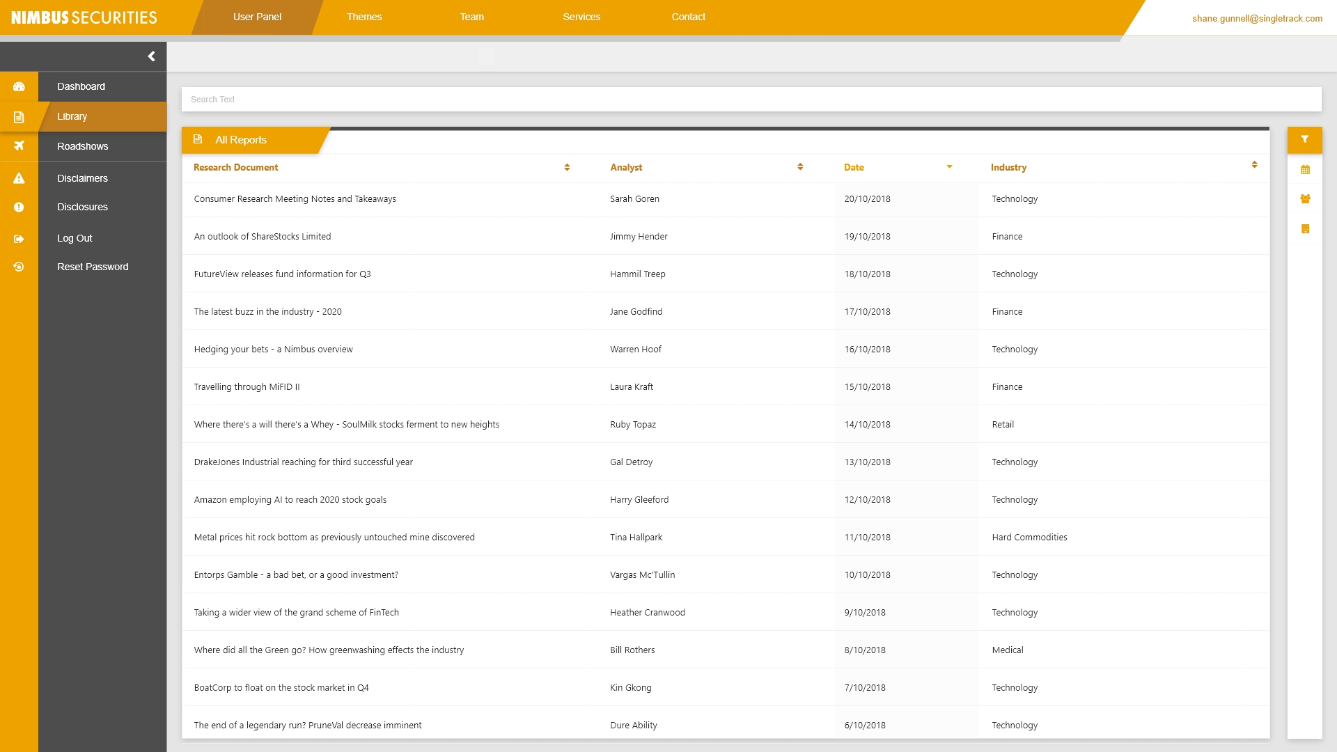 Nimbus is Singletrack's standard portal offering that is used to demo to potential clients the general stock-standard feel & capabilities that can be provided as a service.